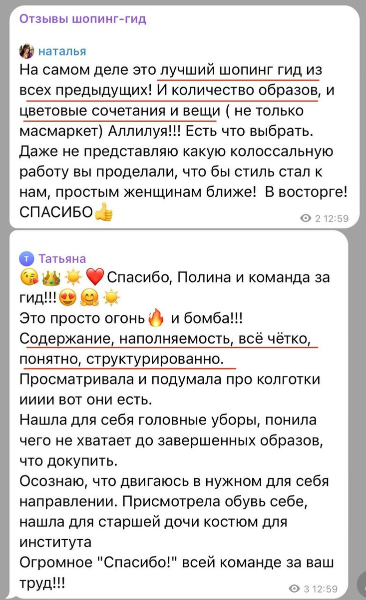 - «Шопинг-гид приобрела первый раз. Очень нравится, любой элемент одежды кликабелен, что очень экономит время на поиски нужной вещи»