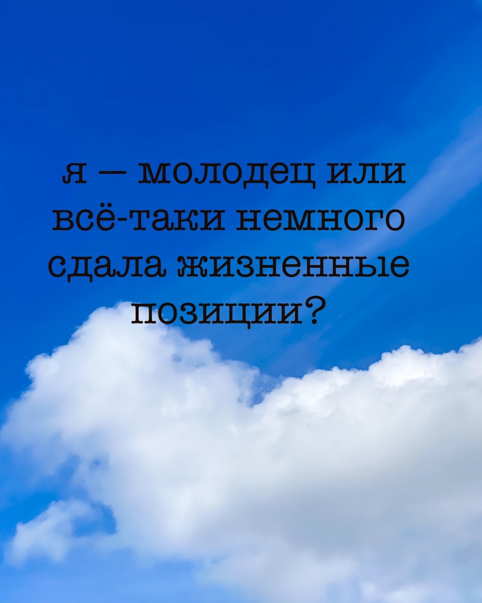 Вчера говорила с приятельницей. Мы учились в одной школе, в разных классах. После замужества интересы разошлись, но привычка поздравлять друг дружку в дни рождения осталась. Однажды пропустили пару лет и вот вчера созвонились. Ей немного за пятьдесят. Статус: давно разведена, но по-прежнему официально прекрасна. Сын взрослый, живет неподалёку — любят друг друга на расстоянии вытянутой руки и отдельно оплаченных счетов. После дежурных, но искренних фраз по радостному поводу плавно перешли в разговоры за жизнь. Я отстрелялась быстро — у меня же все по накатанной: муж накормлен, кот тоже. Дома порядок, у детей отдельная счастливая жизнь. А вот у нее терзания души. Пока еще в самом начальной стадии, но звоночек уже прозвенел. И вот чем она со мной поделилась: Пару лет назад у меня внезапно включился режим интроверта — как будто в мозгу кто-то щелкнул тумблером: *«Всё, Ларочка, пора замедляться»*. Я собрала вещи, уехала из города, где все орут, бегут и срочно чего-то хотят, и поселилас