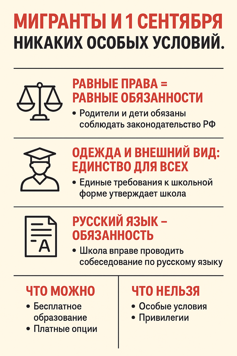 Первое сентября — праздник знаний, но за красивыми линейками стоят строгие правила. В России образование — право каждого (ст. 43 Конституции РФ), но это право не освобождает от обязанностей. Сегодня поговорим о том, что должны знать родители иностранных детей, чтобы их ребенок спокойно учился и не стал участником конфликтов.