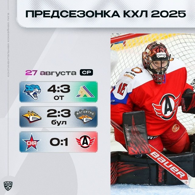 🥅Итоги дня в КХЛ🏒 Благодаря "сухарю" Евгения Аликина "Автомобилист" вырвал победу на престижном Турнире Пучкова. "Магнитка" одержала вторую победу на Мемориале Ромазана @nhockey