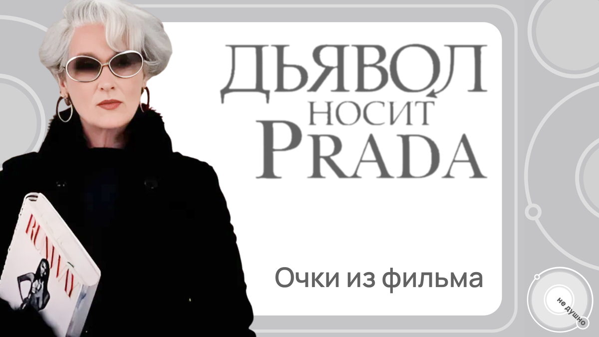 Фильм «Дьявол носит Prada» — это культ. Но культ прошлых лет — тогда еще не было нормой демонстрировать открыто модели и бренды очков. Поэтому редакция, изрядно покопавшись в англоязычных и русскоязычных источниках нашла оправы и приближенные варианты к тем самым «глазам» из фильма. Миранда, образ которой вдохновлён главредом Vogue Анной Винтур, использует очки как инструмент власти. В фильме она носит нечто похожее на Tom Ford FT0250, однако без того самого скрещивания на переносице. Это крупные золотые солнцезащитные овальные очки с градиентными линзами. Цена вопроса в салонах варьируется от 450 до 500 долларов. Мерил также носит прямоугольные очки для зрения в пластиковой оправе белого цвета. Сейчас такие можно найти у многих брендов, один из приближенных вариантов нашего времени, чтобы не выглядеть как бабуля — Modern Optical Slick. Прямоугольные оправы помогают уравновесить и подчеркнуть разные формы лица. Для круглого или овального лица угловатые линии оправ создают контраст, виз