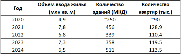 В последние годы рынок недвижимости Москвы переживает динамичные изменения. Ввод новых жилых комплексов (ЖК) — ключевой показатель развития строительной отрасли, отражающий экономическую активность, демографические тенденции и государственную политику в сфере жилья. В этой статье мы проведем анализ и сравнение данных по вводу новых ЖК в Москве за период с 2020 по 2024 год. Данные основаны на официальной статистике Росстата и других надежных источников. Мы рассмотрим объемы ввода в квадратных метрах, количество зданий и квартир, а также тенденции и возможные причины изменений. 2020 год был отмечен пандемией COVID-19, которая повлияла на строительную отрасль: задержки в поставках материалов, ограничения на работу и снижение спроса привели к относительно низким показателям ввода жилья. Однако уже в 2021 году наблюдался резкий рост, благодаря государственным программам поддержки (например, льготной ипотеке) и отложенному спросу. В 2022–2023 годах рынок стабилизировался на высоком уровне, н
