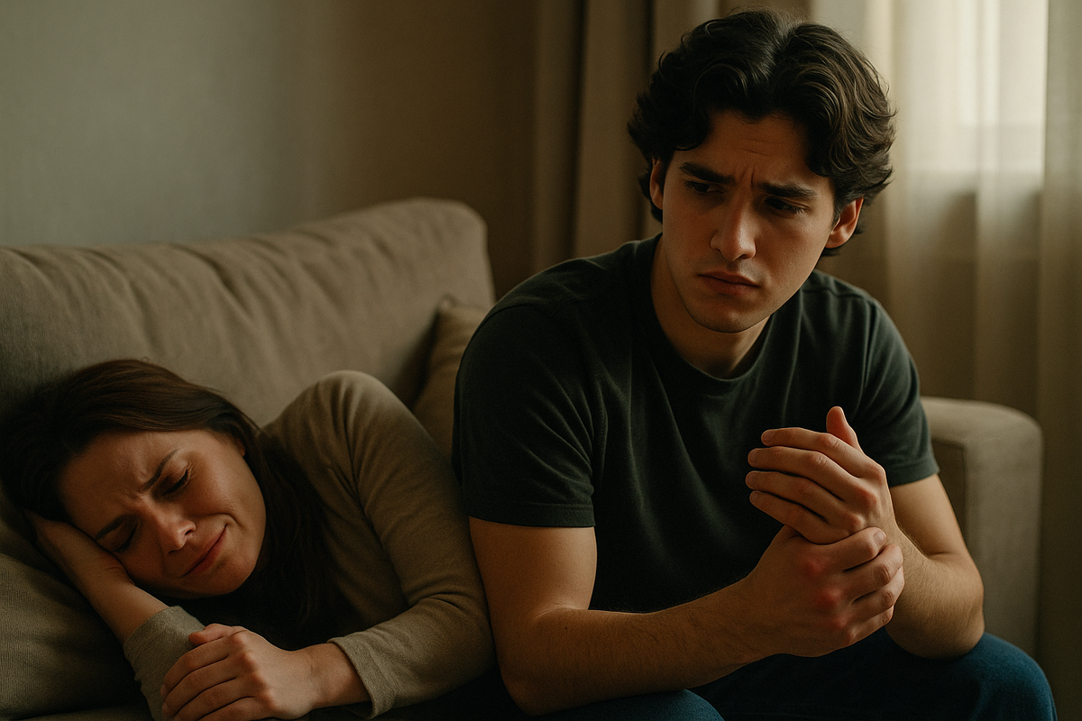 Мальчик устал после бессонной ночи и придя домой на автомате закрыл входную дверь на задвижку, думая, что родители дома. Затем, по привычке, музычку в наушники и на боковую. А мама с отчимом вернулись из парка и второй час ему названивают, потому что заперто изнутри. В звонок, в телефон, в домофон, в телегу, кулаком в дверь.