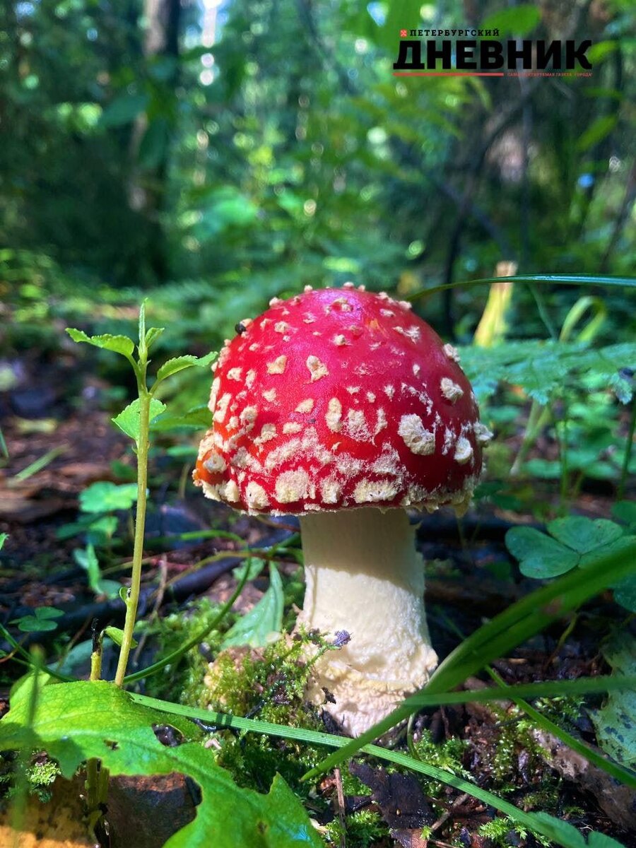 Среди зелёного мха и высокой травы вдруг вспыхивают яркие алые шляпки мухоморов. Они кажутся сказочными героями, прячущимися в тени деревьев.