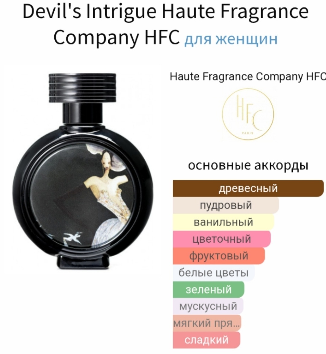 Именно таким я вижу девиз дьявольской интриги. Сливочно-чайный, лактонный, немного древесный парфюм, в котором хочется мурлыкать. Нежный, как кешемировая водолазка. Такое можно и нужно на голое тело. Сливается с кожей, но взмах волосами спустя пару часов - и непонятно откуда обалденный шлейф окутывает пространство. Иногда появляются "зеленые" ноты, и аромат показывает "коготки". Ноту белого чая слышу хорошо. Обожаю среди чаев именно белый, самый удачный и мягкий, крепче не надо. Если бы не этот компонент, Devil intrigue мог стать относительным аналогом килиановской "девочки". На мой нос схожи, но интригу могу носить и в теплое время года, а "девочку" - лучше зимой и осенью. Ни разу интрига не вызвала у меня плохих эмоций. Она словно собрала все хорошее, что есть в любимых духах. - Женственность? Да!
