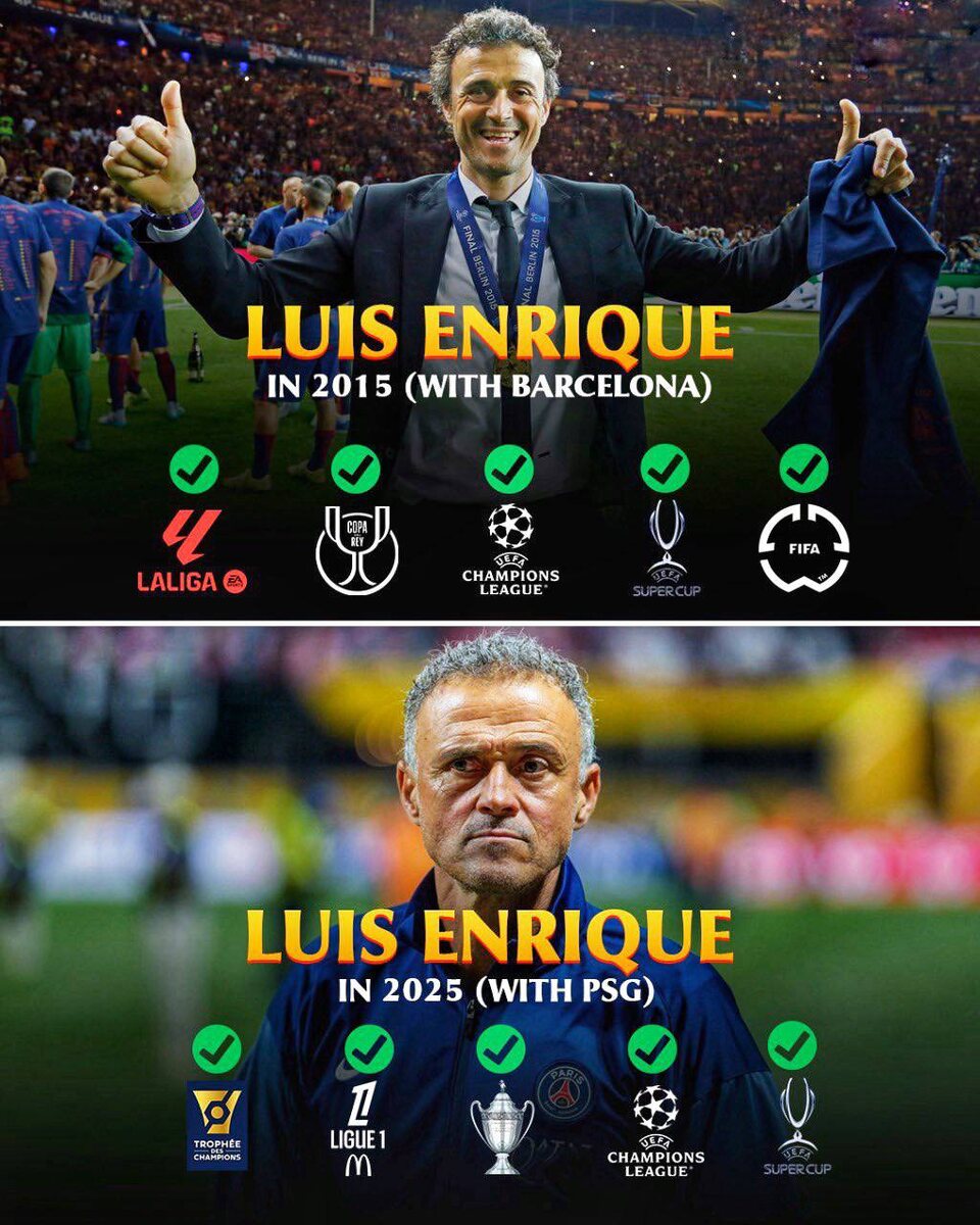 🇪🇸 Луис Энрике выиграл пять трофеев за календарный год во второй раз в своей тренерской карьере 🏆