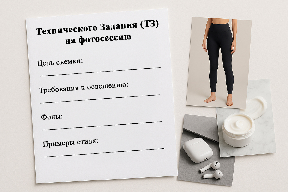 Каждый товар требует не просто фото, а своего — точного — ТЗ. Ниже я покажу, как мы это делаем. С примерами из нашей студийной практики. Техническое задание — это не формальность. Это креативный инструмент. Без него фотосессия для маркетплейсов превращается в «пальцем в небо».