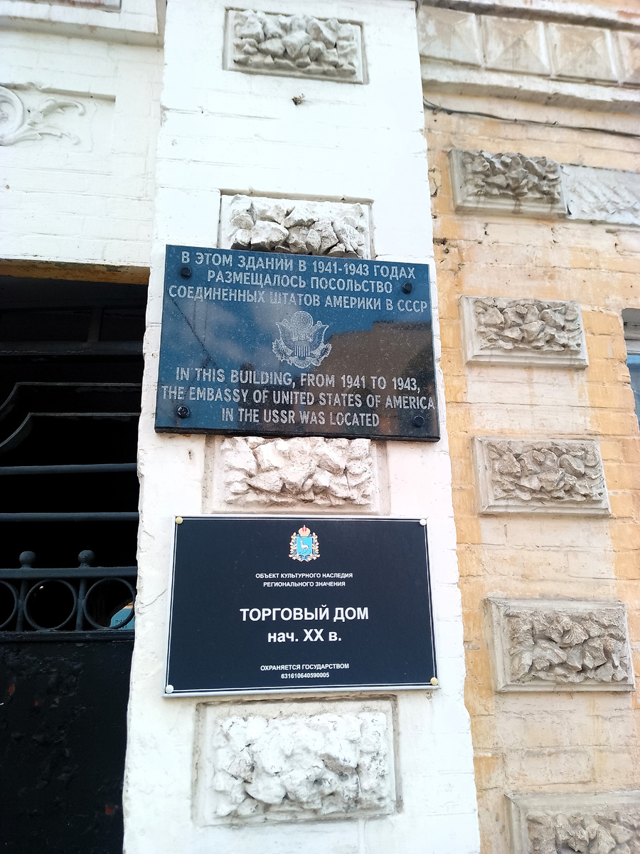 Дом №62 по улице Некрасовская в Самаре (Куйбышеве) в 1941–1943 годах был домом, в котором размещалось посольство США в СССР. По адресу Некрасовская улица, 62 в Самаре находился доходный дом предпринимателей Ратнеров. В 1904 году в нём обустроили фабрику по производству синьки для белья.