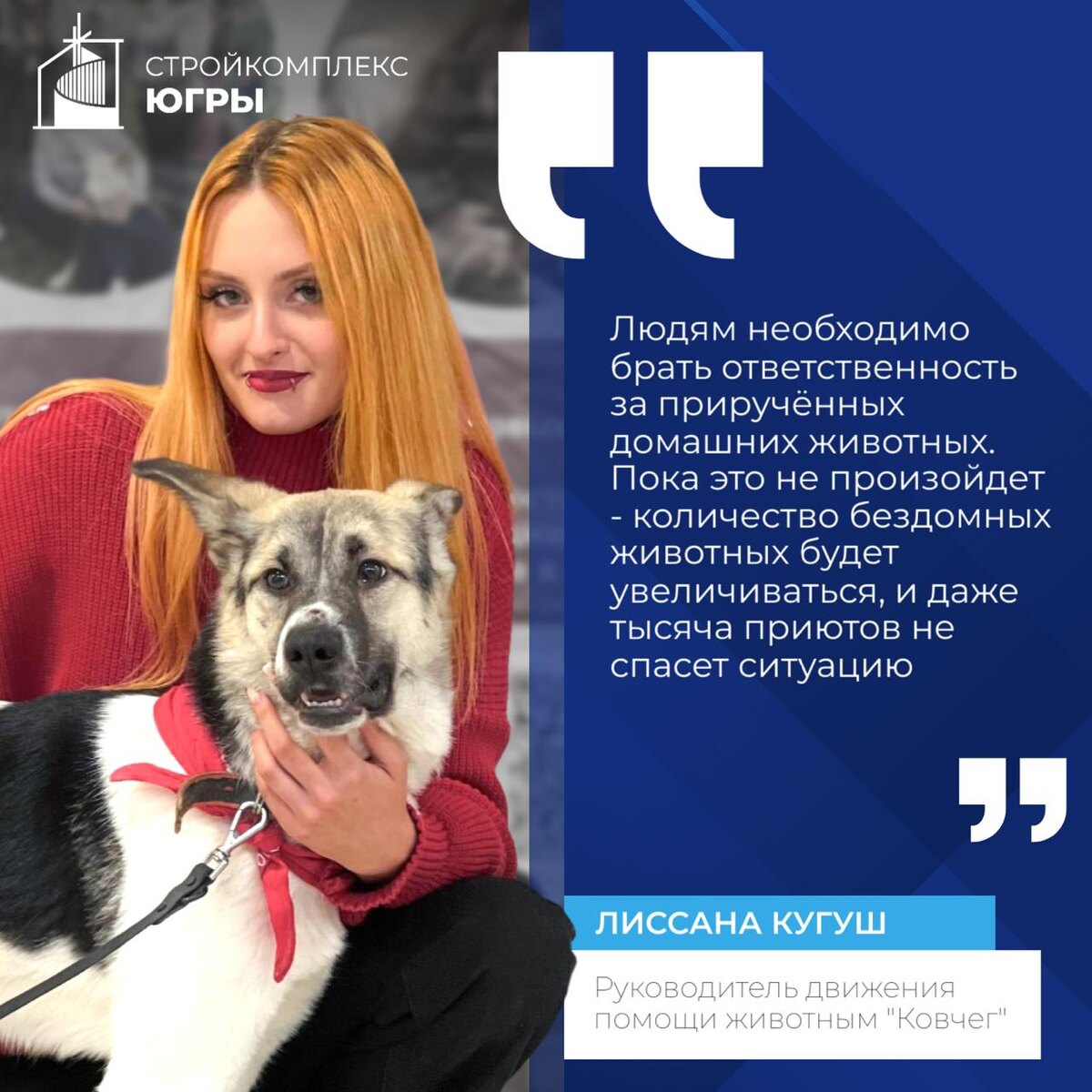 Доброе утро, уважаемые подписчики! 🗓️ Каждый год, в третью субботу августа, отмечается Всемирный день бездомных животных. А, значит, есть повод затронуть непростой вопрос о роли безнадзорной живности в формировании городской среды. Согласитесь, чтобы мы чувствовали себя комфортно на улицах городов, важны не только флора, зеленые насаждения, парки и скверы, но и фауна, которая состоит не только из птиц и белок, но, к сожалению, и из бездомных животных. Как решать проблемы бездомных кошек и собак цивилизованно? С этим вопросом мы обратились к зоопсихологу и руководителю Общественного движения помощи животным города Ханты-Мансийск "Ковчег" - Лиссане Кугуш . 🐻 — Бездомные животные - это решаемый вопрос, который следует изучить и понимать всем, — считает Лиссана Борисовна. — Все питомцы, что оказались на улице - это результат безответственного отношения человека. По многолетним данным могу с точностью сказать, что самые распространенные причины, по которым животные оказываются на