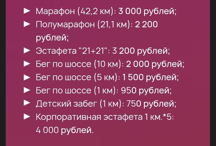 Цены на бег растут с каждым годом 23-24 пройдёт XVIII Челябинский марафон. Хотя мероприятия проводятся на гранты полученные некоммерческими организациями, есть спонсоры , в том числе сам муниципалитет, тем не менее участие в этом марафоне платное и с каждым годом все дороже. Здорово, что такие марафоны проводятся, надеемся что те кто не может заплатить так же могут принять участие в пропаганде здорового образа жизни, хотя бы на какой-то бесплатной эстафете.