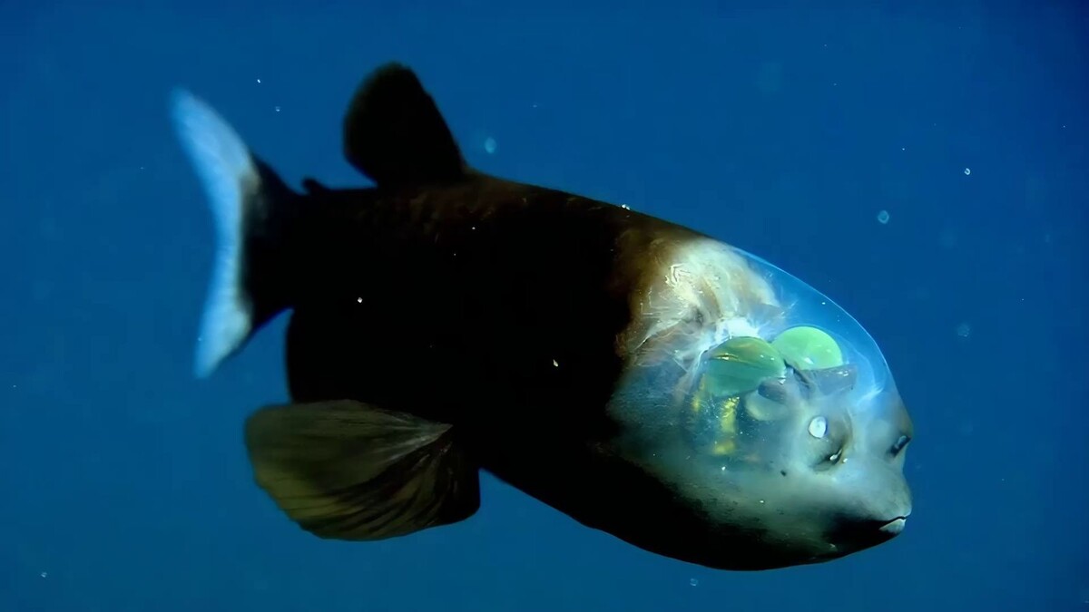 В глубинах Тихого океана обитает рыба с прозрачной головой. Трубчатые глаза бочкоглаза направлены прямо вверх через прозрачный череп, что позволяет ему обнаруживать добычу над собой. При необходимости эти глаза поворачиваются вперед, как перископы подводной лодки. Светящиеся зеленые линзы прорезают темноту, а лицо выглядит, как из научно-фантастической лаборатории. Рыба не плавает быстро, не гоняется за добычей — она просто наблюдает. И этого ей достаточно, чтобы выжить.