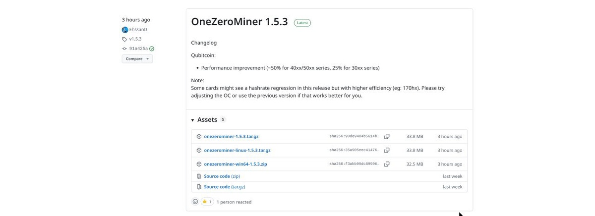 OneZeroMiner 1.5.3 — Qubitcoin: Улучшение производительности (~50% для серий 40xx/50xx, 25% для серий 30xx) Примечание: В этом выпуске на некоторых картах может наблюдаться снижение хешрейта, но при этом эффективность может повыситься (например, 170hx). Попробуйте изменить разгон или используйте предыдущую версию, если она вам подходит. Скачать