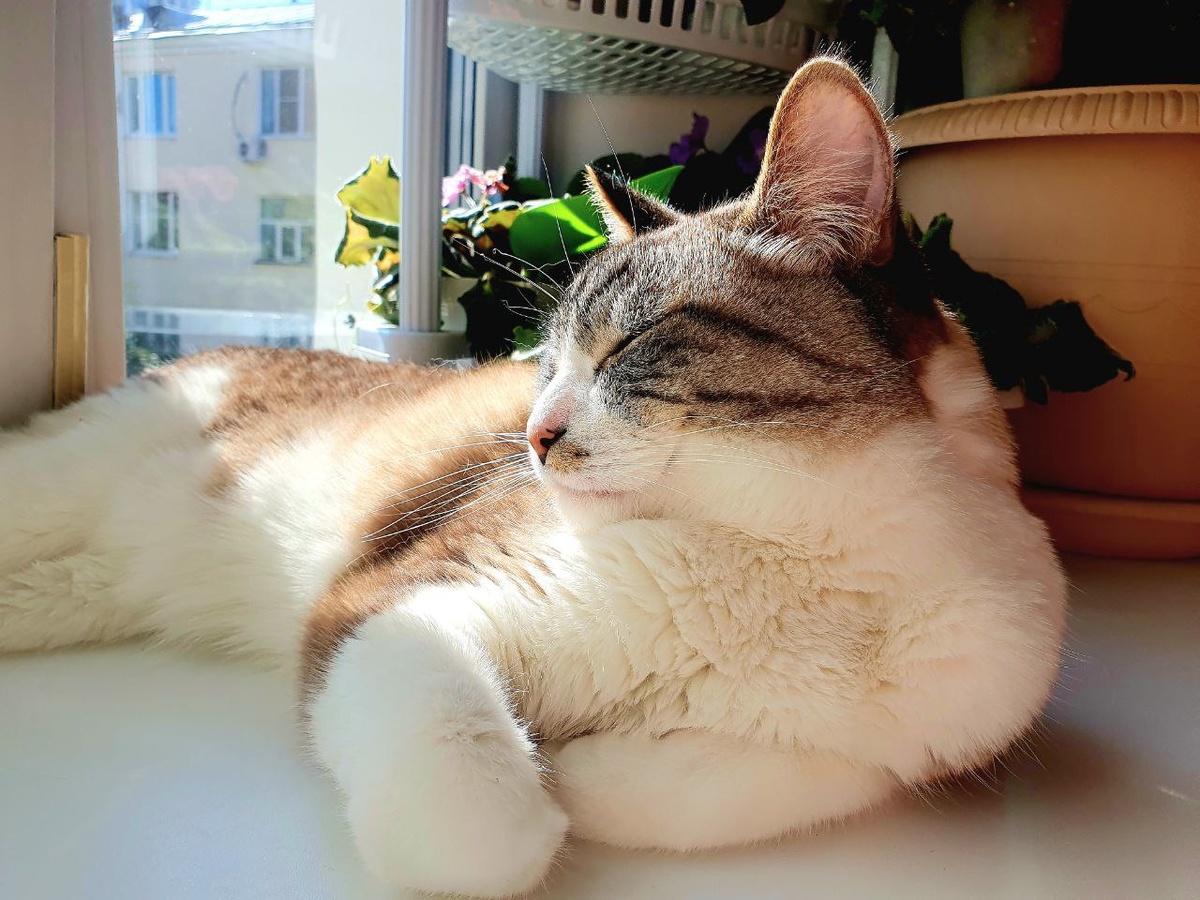 Утренний отдых рядом с фиалочками 👋 Ну и что, что потом все фиалочки в шерсти))