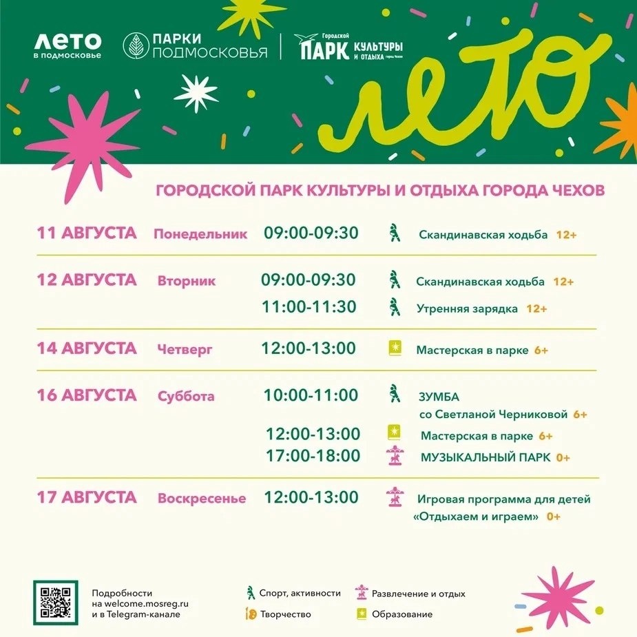 ✨ Расписание на неделю в Парках Чехова (11 августа - 17 августа