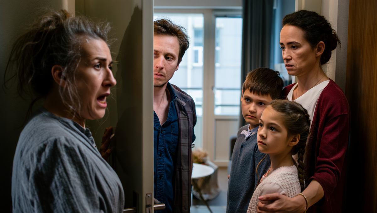 Дети испуганно жались к тётке, которая стояла с каменным лицом.