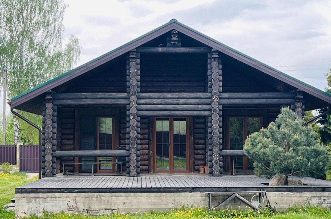 Дом построен из оцилиндрованного бревна в 2017 году и имеет общую площадь 100 квадратных метров. Особое внимание уделено качеству строительства: фундамент заглублен на 1,5 метра и дополнительно укреплен бетонной плитой толщиной 30 см, крыша покрыта мягкой черепицей, а в оконных и дверных проемах установлены трехкамерные стеклопакеты с независимыми системами скольжения.