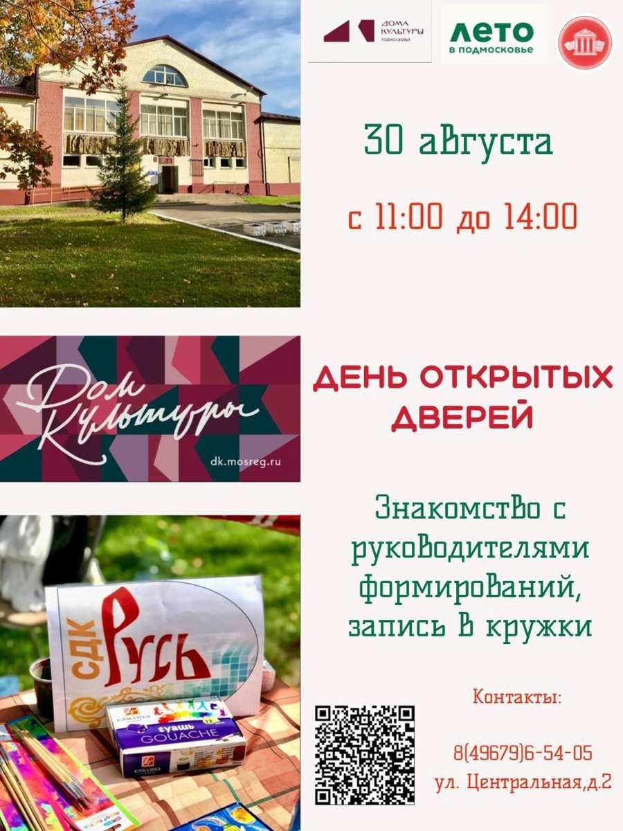 ✨ Дорогие друзья! Уже совсем скоро СДК «Русь» распахнёт свои двери в новый творческий сезон!😀 Вы сможете: ✅ записаться в кружки; ✅ познакомиться с руководителями формирований; ✅ задать все интересующие Вас вопросы; ✅ принять участие в мастер - классе; ✅ получить полную информацию о работе СДК; ✅ посетить просмотр мультфильма всей семьей; ✅ воспользоваться фото зонами на память; ✅ посмотреть на выставки творческих формирований СДК. Ждём всех!👍 Мы работаем для Вас! 🤝 Сделаем вместе новый творческий сезон ярким, наполненным и прекрасным! 💖 🚫 Возраст: 0+ 📆 30.08.2025🕒11:00 🏢 Сельский дом культуры (СДК) «Русь» 📍 г.о.Домодедово, с.Красный Путь, ул.Центральная, д.2 💰 Вход свободный❗️ ✅ Мероприятия Домодедово https://dzen.ru/id/66f10385cc4c5a16f7b5fb02 http://vk.com/domodedovo_events http://dzen.ru/domodedovo_events