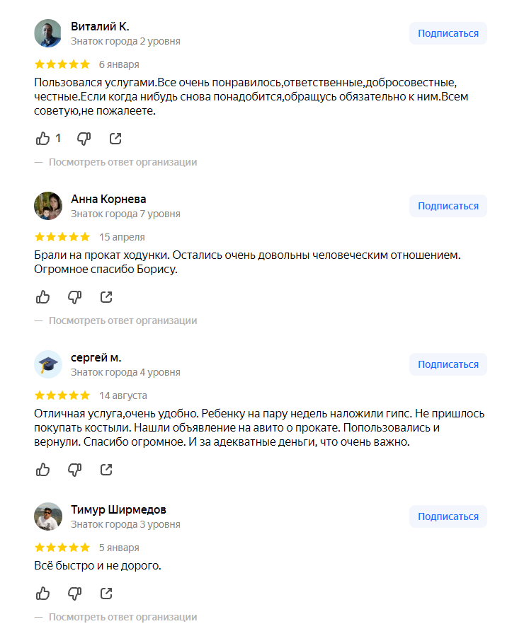 Отзывы о МедОпоре на Яндекс картах и Авито, которые говорят о том, что наша деятельность не напрасна и мы приносим пользу обществу.