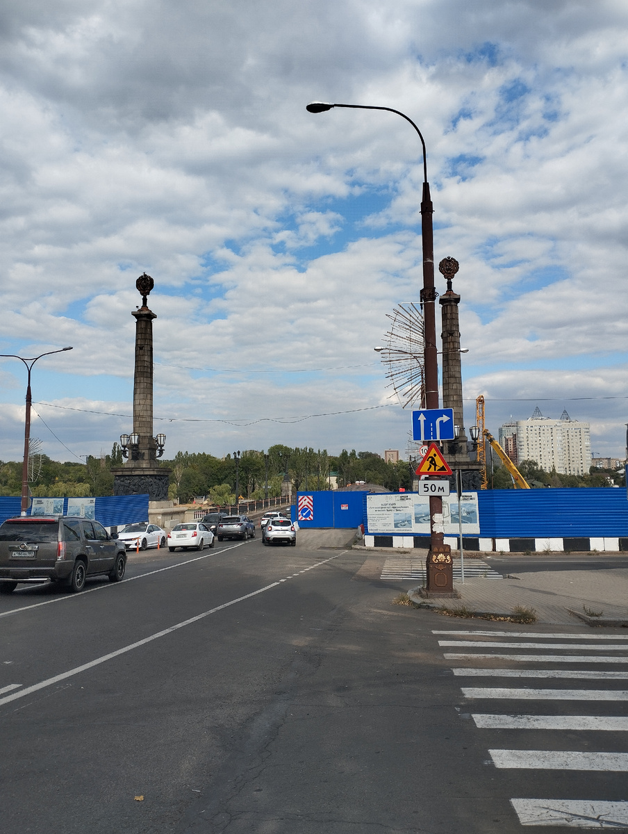 расскажу немного подробнее о том, как сейчас идёт ремонт исторического моста через реку Кальмиус в центре Донецка.