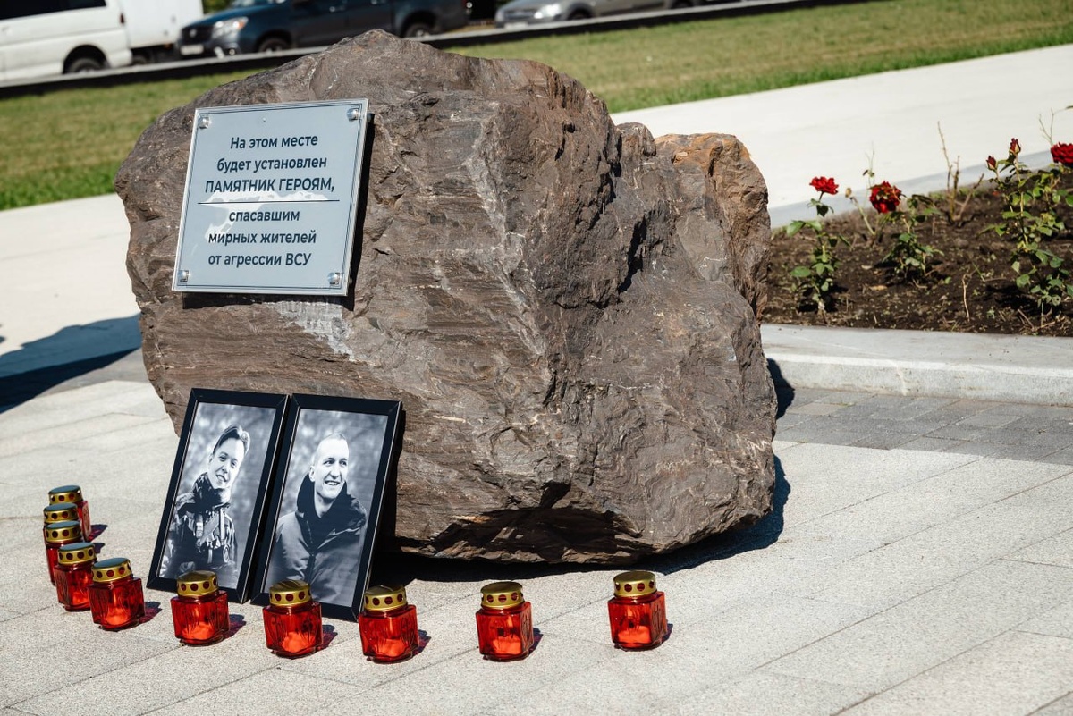Память добровольцев куряне почтили минутой молчания. К камню, заложенному в основание будущего памятника героям, возложили цветы.