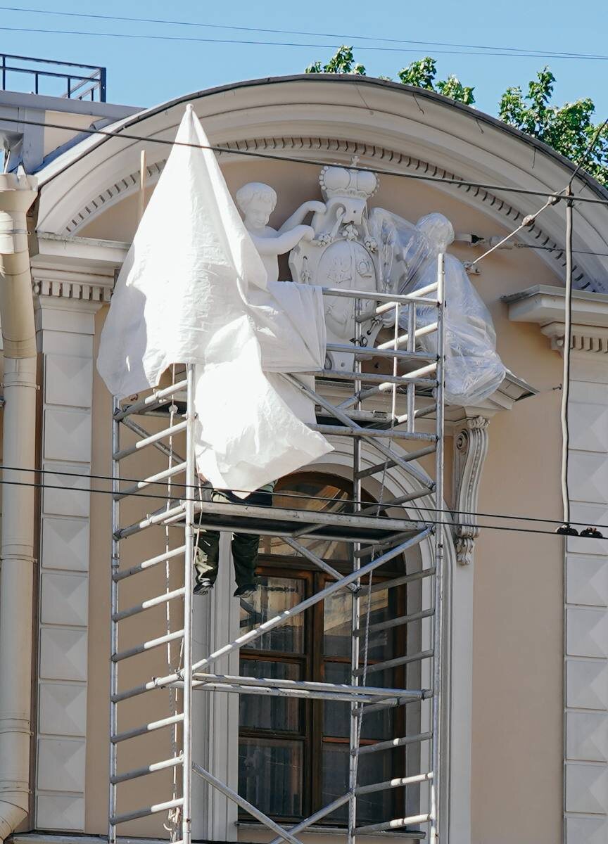 🏛 Особняк Урусова обретает исторический облик На фасад особняка Урусова, где сейчас располагается библиотека имени Лермонтова, возвращаются четыре скульптуры путти — очаровательные декоративные фигуры младенцев, характерные для архитектуры Ренессанса, барокко и рококо. Специалисты провели масштабную реставрацию фасада, опираясь на авторские чертежи архитектора Льва Вендрамини и архивные материалы. Благодаря этой работе были восстановлены исторические детали, такие как гербы графов Мусиных-Пушкиных и княжеская корона. Фото: телеграм-канал Александра Беглова Петербургский дневник