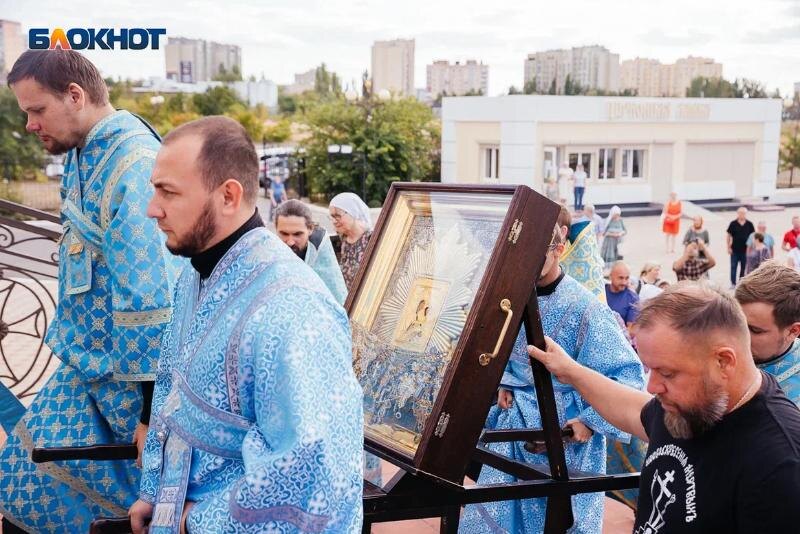 14 августа в Волгодонск прибыла чудотворная икона Божией Матери «Избавительница от бед» (Ташлинская), почитаемая православными верующими как источник исцеления и утешения. Святыню встретили в соборе Рождества Христова, где состоялся акафист в ее честь. Казачья машина доставила икону в собор, где ее ждали священнослужители города и множество прихожан, желающих поклониться образу Пресвятой Богородицы. Епископ Антоний рассказал собравшимся об истории обретения иконы в селе Ташлы. Согласно преданию, местной жительницы Екатерине Чугуновой трижды являлась Богородица, повелевшая найти ее икону в земле, в овраге, близ этого села. Екатерина увидела над оврагом двух ангелов, несущих икону Божией Матери, озаренную ярким сиянием. Когда ангелы опустились на дно оврага, видение исчезло. После этого люди начали копать в указанном месте и обнаружили икону, лежащую ликом вверх. На месте обретения иконы забил родник. Церемония внутри собора вышла впечатляющей. Солнечный свет, проникая сквозь высокие аро