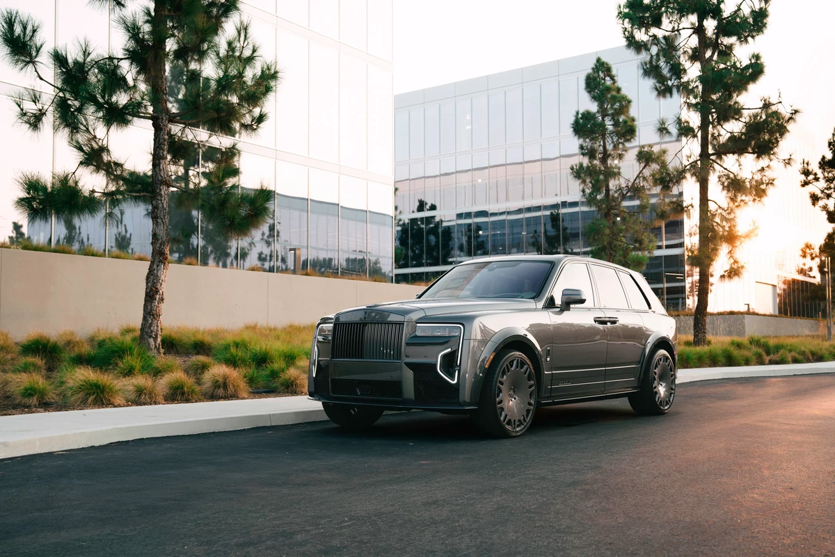Rolls-Royce Cullinan получил новый обвес с расширителями крыльев и боковыми юбками, а также переработанный передний бампер с увеличенными воздухозаборниками и особыми дневными ходовыми огнями, которые гармонично сочетаются с штатными светодиодными фарами. Капот обзавелся карбоновой отделкой.