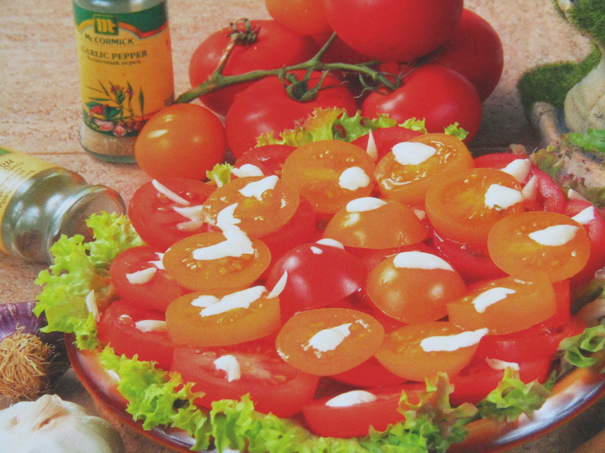 — листья зеленого салата для подачи. 🍴 Приготовление: Совет от бабушки Митрофановны: Для пикантности добавьте к майонезу 1 ч. л. лимонного сока или посыпьте салат тертым сыром. «Секрет бабушки Митрофановны» В деревне Подсолнухово, где даже воздух пахнет ромашками и свежеиспеченным хлебом, жила бабушка Митрофановна — настоящая волшебница кухни. Каждое воскресенье её дом наполнялся смехом внуков, а на столе появлялся тот самый салат, от которого слюнки текли ещё на пороге. — Садись, роднуля, помидорчики чистить будешь! — улыбалась она, доставая из погреба спелые алые помидоры, будто отборные рубины. Нож в её руках танцевал: ш-ш-ш-ш — и на деревянной доске вырастала гора идеальных кружочков, таких тонких, что сквозь них просвечивало солнце. А потом начиналось таинство. На вышитой салфетке расстилались листья салата — «чтобы