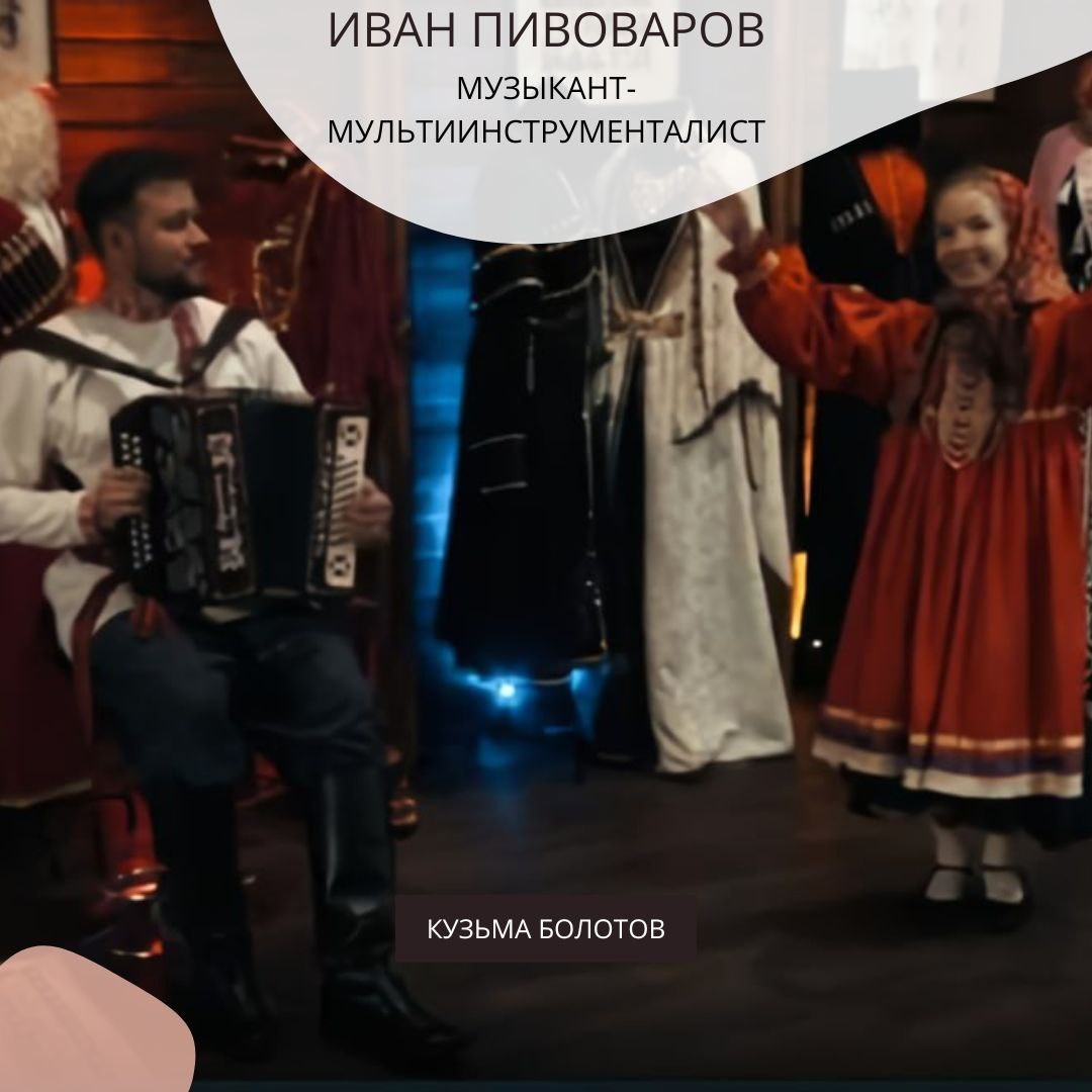 Знакомьтесь: Иван Пивоваров – музыкант-мультиинструменталист Владимир Торопов Дорогие мои читатели! Я с большой радостью хочу познакомить вас ещё с одним уникальным музыкантом. Его зовут Иван Пивоваров. Балалайка и гармонь, баян, жалейка и свирель – это инструменты, которыми Иван виртуозно владеет. Этот блистательный артист выступает на сцене с 2000 года. Пивоваров закончил Московский государственный университет культуры и искусств. Он награждён серебряной медалью «Национальное достояние», Гран-при Международного конкурса «Колыбель России (2011). Артист является лауреатом гранта мера г. Москвы (2017) и многих других международных и всероссийских конкурсов. Этот артист – действительно национальное достояние нашей России. Иван Пивоваров приобрёл бесценный опыт, долгие годы работая в Пензенском русском народном хоре имени Октября Гришина. Иван обладает красивым и ярким баритоном. Вместе с супругой, тоже профессиональным музыкантом, пианисткой душевно исполняет русские, народные и за