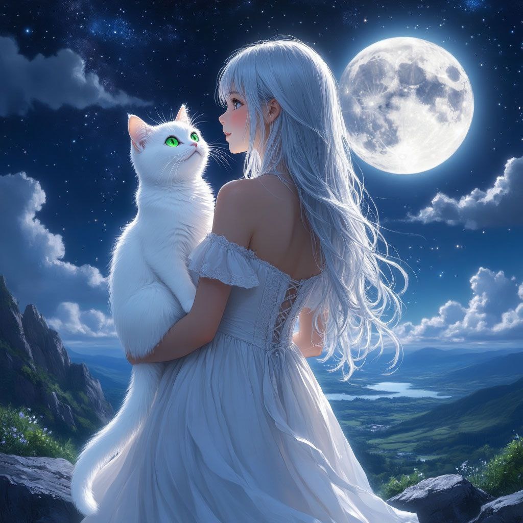 В одну особенно тёмную ночь, когда слёзы лились ручьём, произошло чудо. Алиса услышала тихий шорох за окном. Это был Лунный Кот — душа её папы, принявшая волшебный облик.