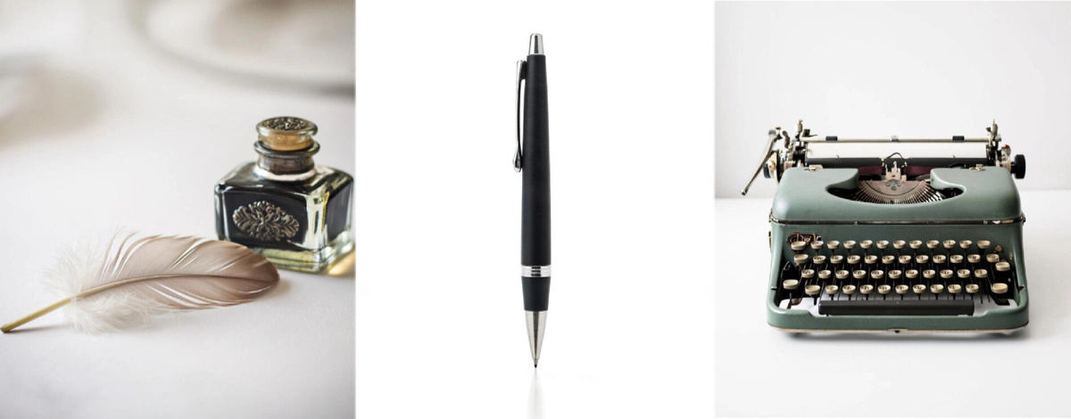 Перед вами три картинки: перо и чернила, шариковая ручка, печатная машинка. Выберите одну из них, которая вам больше всего нравится.