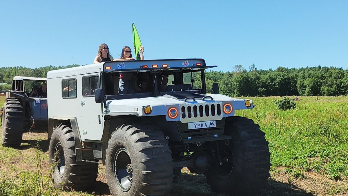 Пожалуй самым впечатляющим самодельным вездеходом СЛЁТа был "Умка" Геннадия Сафронова из г. Невьянск, Свердловской области. Участников и зрителей впечатлил не только дизайн, к которому Гена всегда подходит очень продуманно, но и проходимость вездехода. "Умка" уверенно и с первого раза прошел трассу слёта. Но потом после того, как ямы хорошо размозолили колесами, и ему пришлось трудно проходя грязевые ямы повторно. "Умка" был одним из эвакуаторов слёта, который помогал другим участникам выбираться из ям, когда своим ходом они уже не могли справиться. Мощность, вес, габариты и диаметр колес делают его не просто сверх проходимым, но и уверенно плавающим. На слёте не было возможности его испытать на плавучесть, но он точно плавает и очень даже хорошо. А это создатель "Умки" Сафронов Геннадий Леонидович. Уральский умелец, который собирает вездеходы такими, какими он их видит. Зрители поддерживали "Умку" и очень за него болели. И он действительно показал очень хорошее прохождение на СЛЁТе