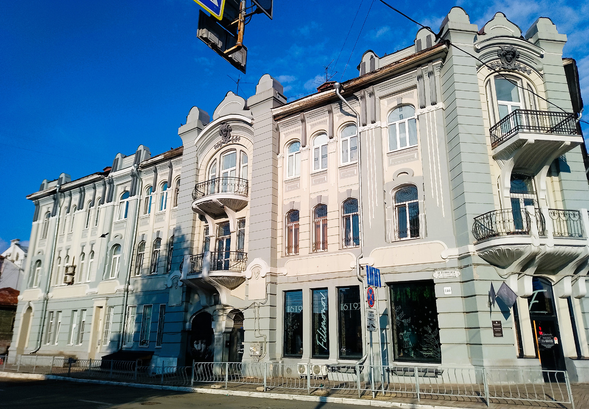 На первом этаже располагались торговые предприятия, второй этаж был задуман как место для одного из первых в Самаре кинотеатров-биоскопов. 6 декабря 1907 года газета «Волжское слово» опубликовала новость об открытии электро-театра «Гранд-Электро».