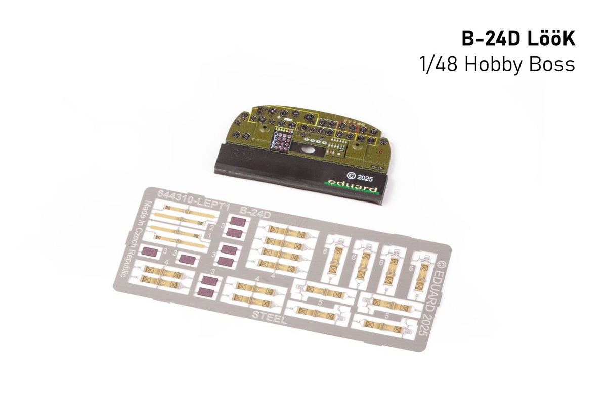Eduard из Чехии выпустила в серии LööK на 3D-принтере приборную доску и фототравленые привязные ремни для модели B-24D Liberator в масштабе 1/48 от Hobby Boss: