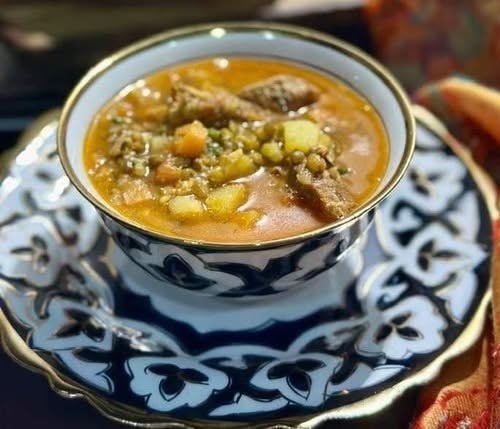 Машхурда — это национальный узбекский суп, который готовят в казане. Он получается густым, ароматным и невероятно сытным. Благодаря сочетанию мяса, овощей, риса и маша (зелёных бобов) блюдо прекрасно утоляет голод и подходит как для обеда, так и для ужина.