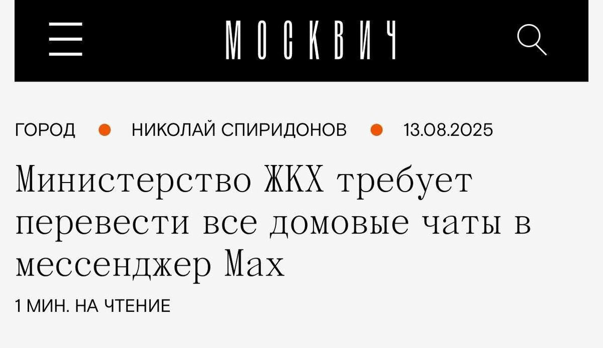 💠 Министерство ЖКХ требует перевести все домовые чаты в мессенджер Max
