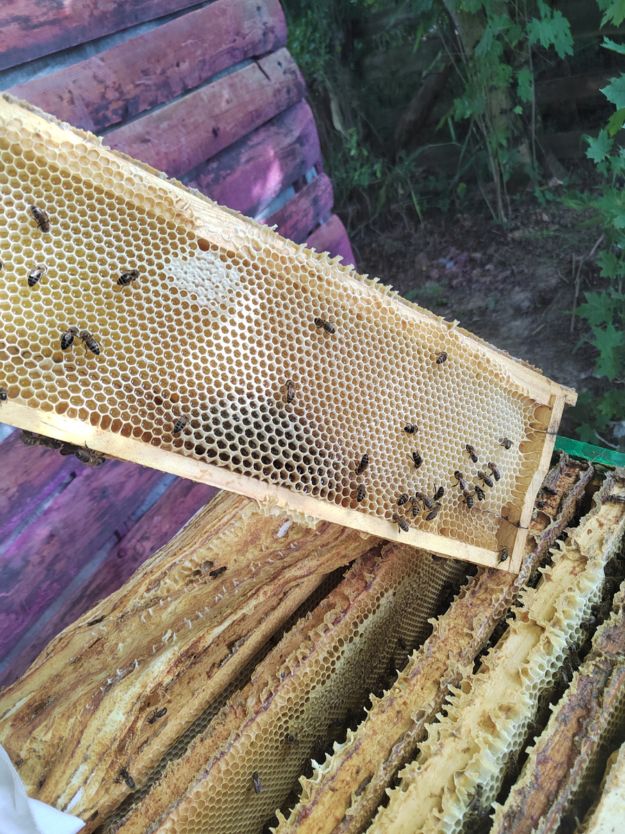 Итог таков: мед есть но его меньше чем в последние несколько лет. В этом году сложились неблагоприятные погодные условия. Жаркое начало апреля, холодный май, июнь - внесли корректировки в мои планы. Из за теплого апреля пчелы нарастили силу, (после зимы семьи были сильные) в мае пришло похолодание очень затяжное - что спровоцировало сильнейшее роение. Даже смена маток на молодых не спасла. Но всеровно были теплые дни благодаря которым пчелы принесли майско-июньский мед, но его тоже было меньше чем в прошлые года. Этот мед я качал в конце мая , в течении июня, и в начале июля.