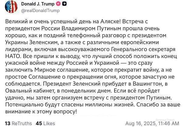 ☄️Дональд Трамп анонсировал трехстороннюю встречу с Путиным и Зеленским