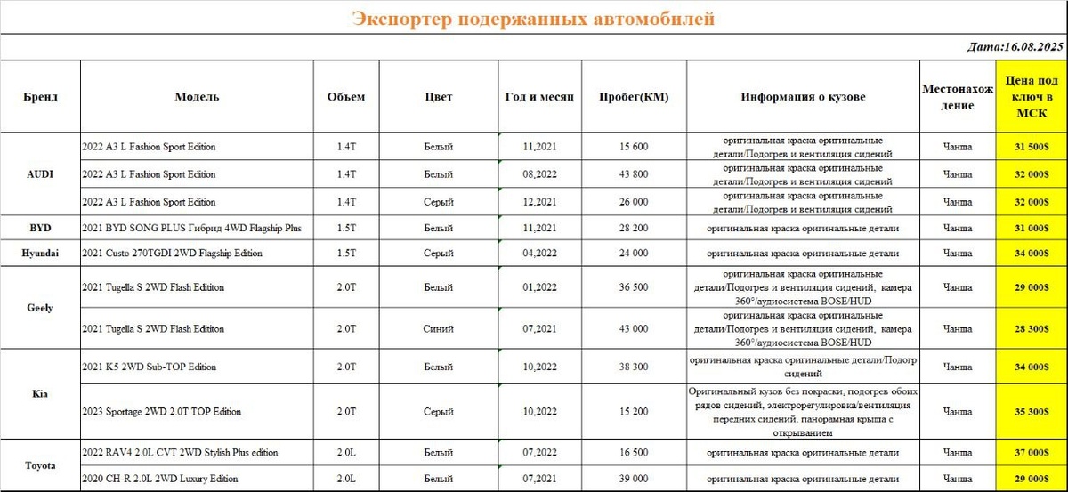 Автомобили с пробегом из Китая!!! Срок поставки в МСК до 50 дней. Все цены указаны под ключ. Вам останется только оформить ОСАГО и поставить автомобиль на учет.