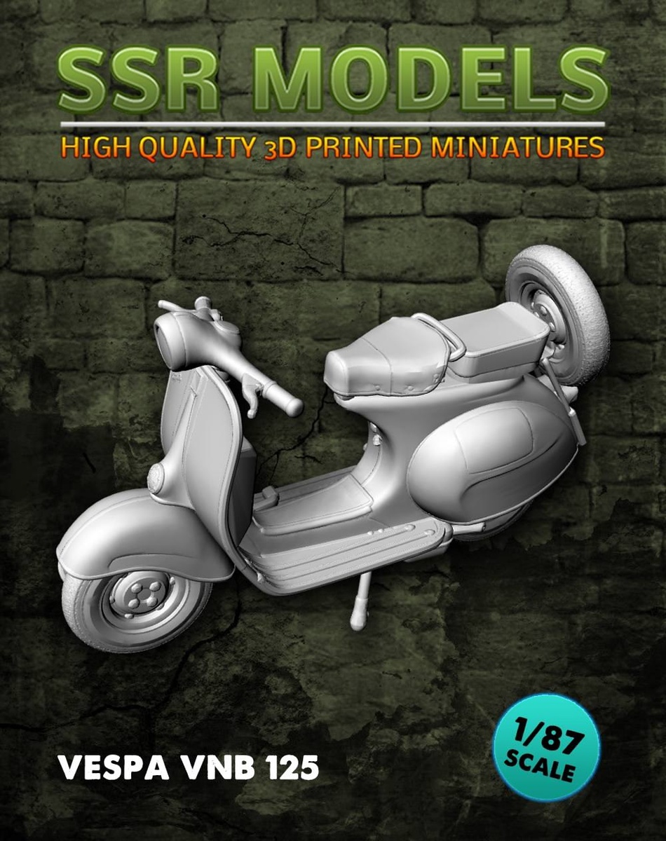 Шведская SSR Models выпустила на 3D-принтере модели мотороллера Vespa VNB 125 и велосипедов на велопарковке в масштабе 1/87 (Н0).