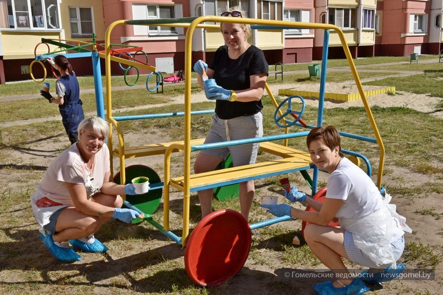 В Новобелицком районе Гомеля на субботнике ремонтировали детские площадки