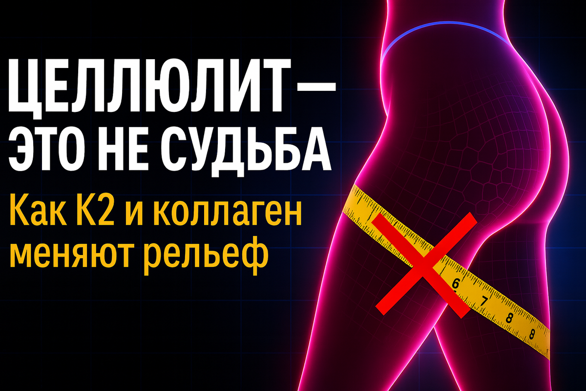 «Целлюлит — генетика». Генетически задаётся калибр сетки, но качество нити и вода между волокнами — это питание. Гликация, омега-6 и инсулин делают худших «родителей», чем ваши гены. K2, ретинол, коллаген, жиры и силовая — меняют картину у любой конституции.