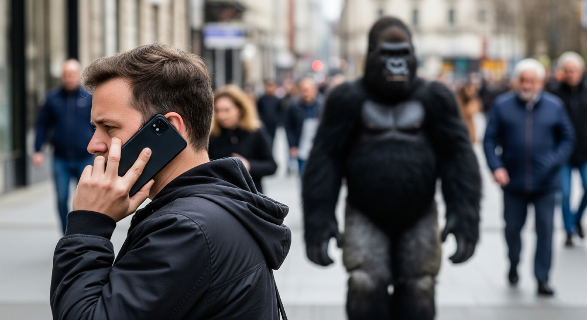 - "Невидимый горилла" (Саймонс и Чабрис): Испытуемые следят за пасами баскетболистов. Человек в костюме гориллы проходит через центр сцены, бьет себя в грудь. ~50% его не замечают!