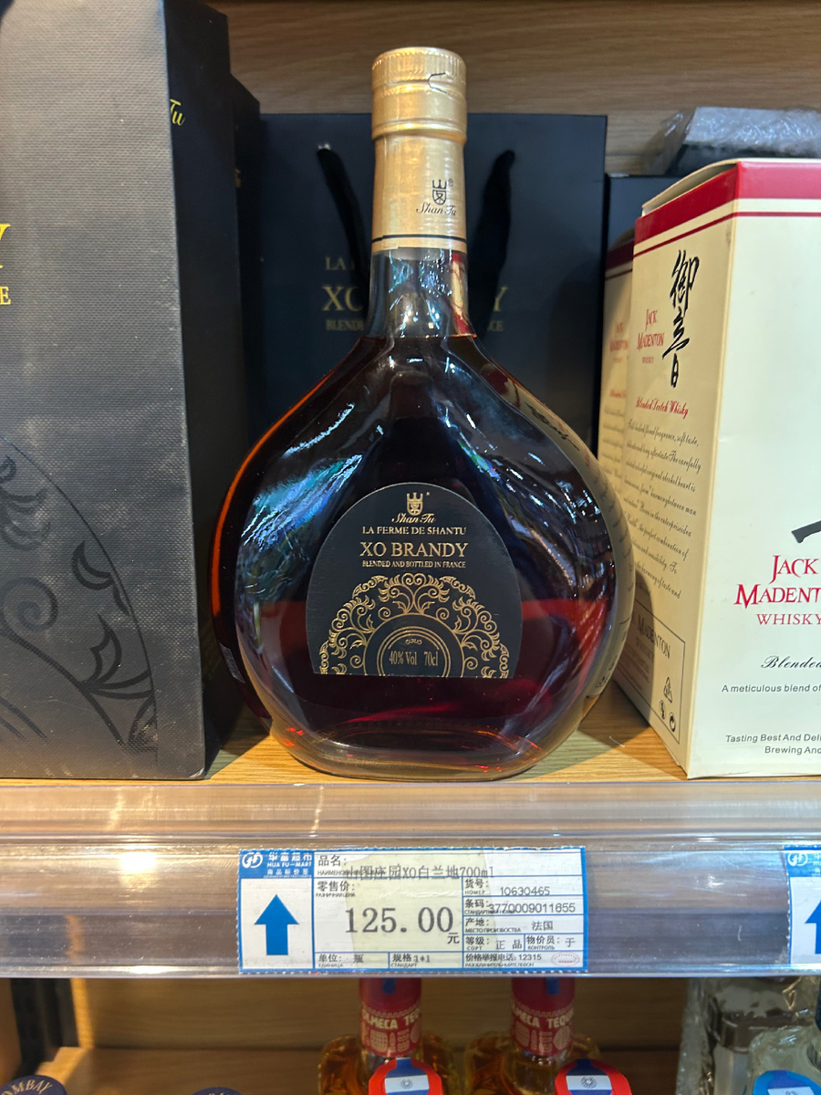 В одном из универмагов встретился с определенным набором коньячных представителей. Набор широкий непонятный и невзрачный в основном . Внимание привлекли два. Первый местный, который стоял в отдн китайской премиальной продукции. Второй непонятный француз в отделе импортного алкоголя. Последний был взят в плен для знакомства дома.