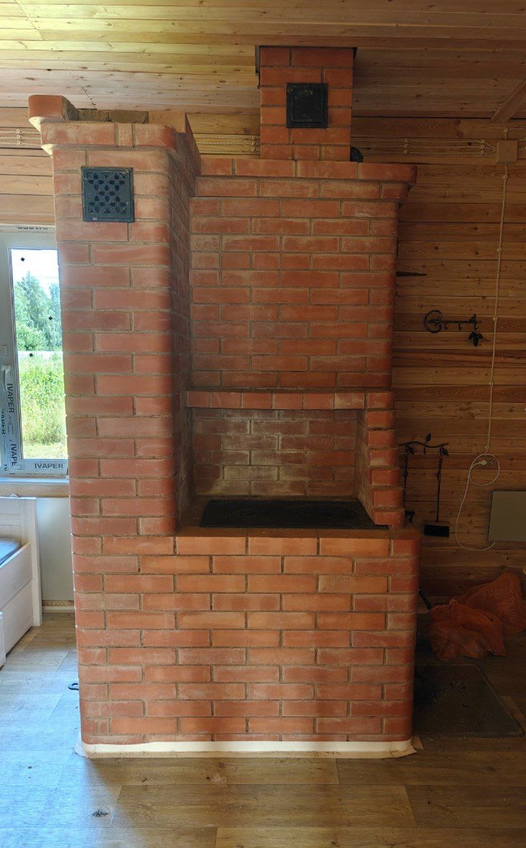 Печка вот такая. По деньгам вышло 130 000 работа, 60 000 кирпич (цена примерно 2.5 года назад). Строилась она очень нервно, так как есть небольшие косяки, печник уходи иногда в запой (три раза уходил), пришлось переделывать трубу 🙃 но в целом жить можно. Но мне в целом говорили, что это даже хорошая примета - запой у печника. Почему выбор пал на него - он бы точно не пропал с деньгами и в принципе делает все неплохо. А в стройке, как оказалось, это самое важное.
