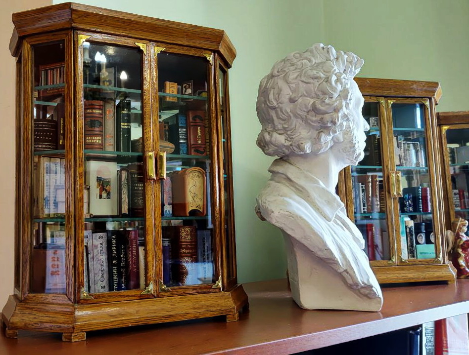 Все фотографии, размещенные в этой статье, я сделала в Детской библиотеке имени А.С. Пушкина, где я была в рамках экскурсии. Я, как любитель кукол и кукольной миниатюры, сразу же представила эти книжки и книжные шкафы в интерьерах кукольных домиков.