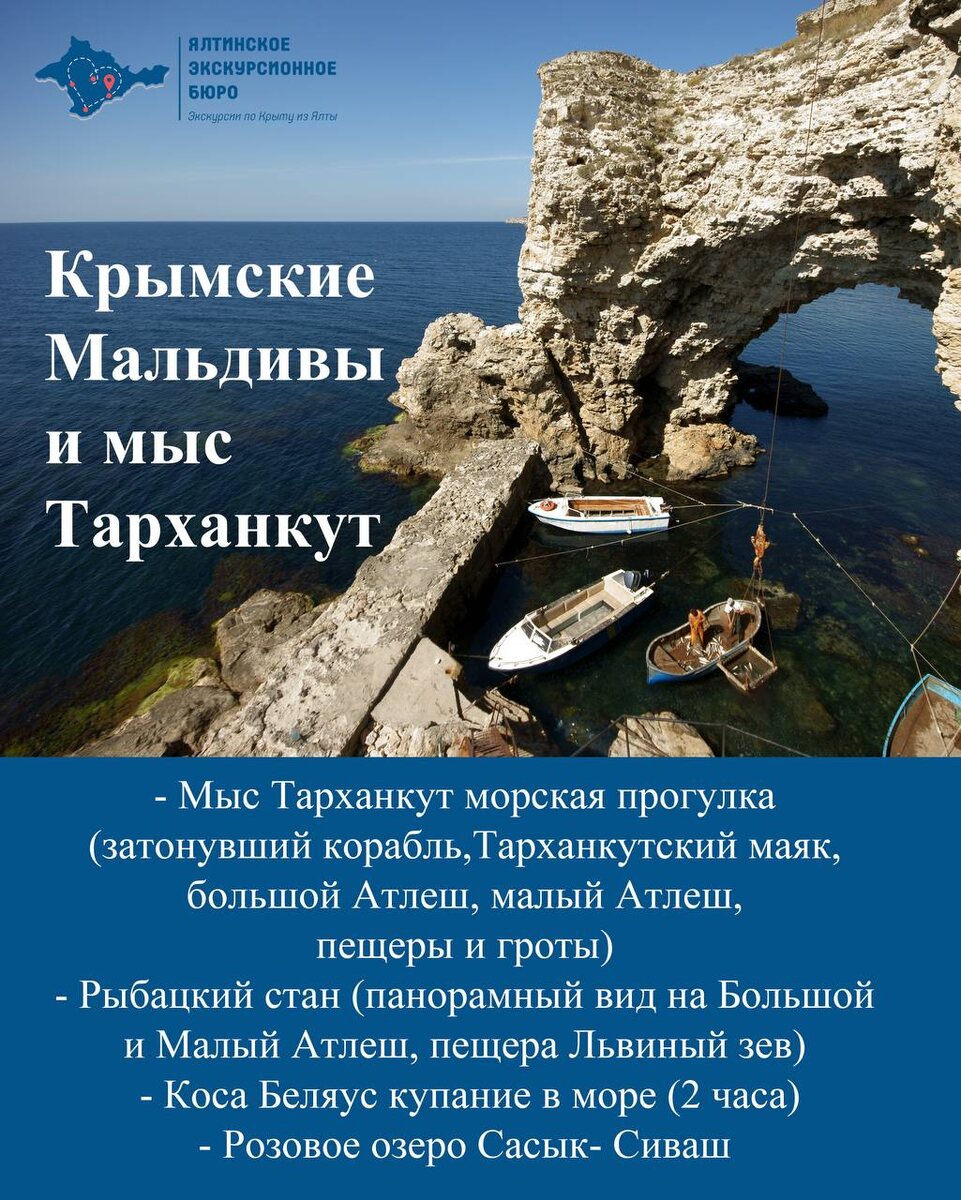 🗓️ Ср, вс 🚌 05:30 📲 +7 (978) 721-36-60 🌏 https://yalta-ex.com/krymskie-maldivy-i-mys-tarxankut