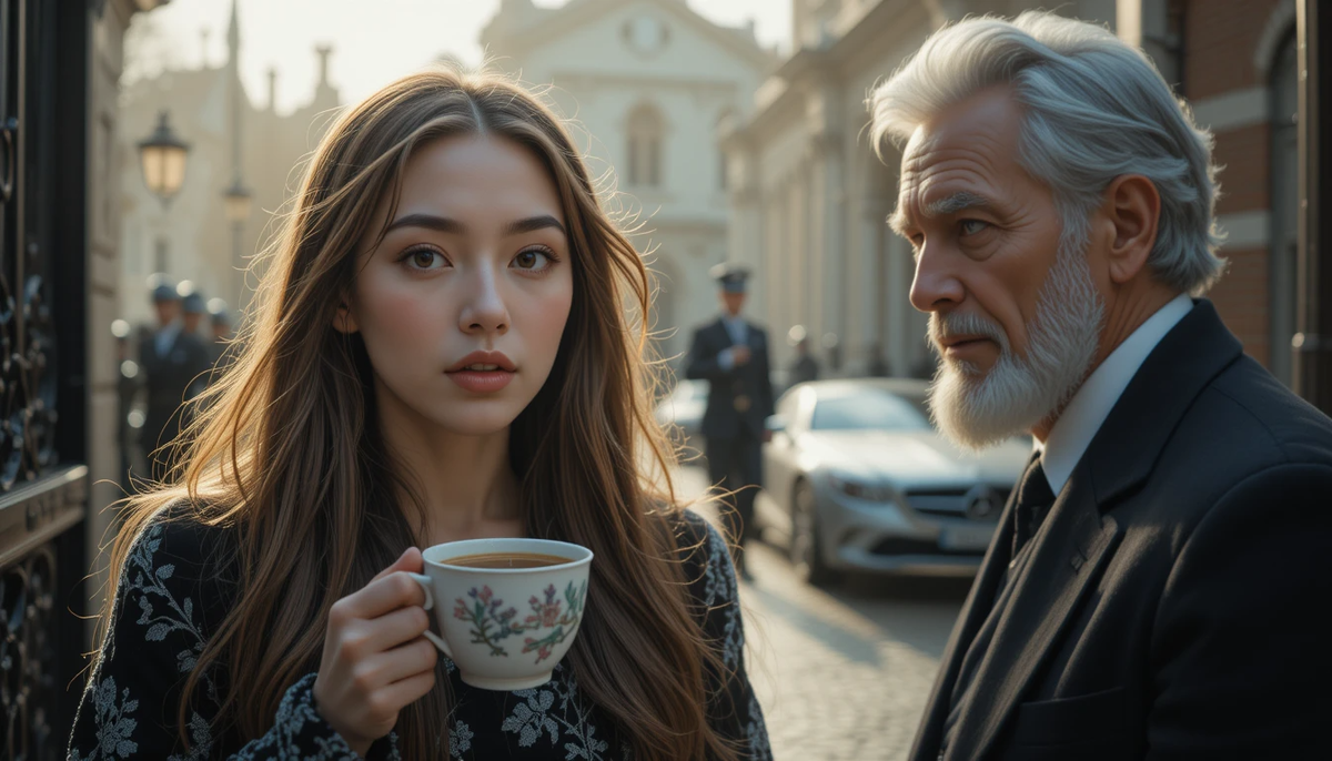 Наутро я проснулась от непривычного шума за окном. Это был деловой, строгий гул — не дворники, не дети — а совсем другое: тяжёлые шаги и голос. Я выглянула в окно — у ворот стояли двое людей в строгих тёмных костюмах, с коротко остриженными затылками, один из них держал папку. Был ещё и курсирующий рядом автомобиль, в котором сидели мужчины с рациями.