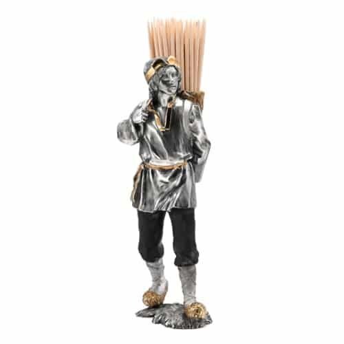 Серебряная подставка под зубочистки Крестьянин Серебро 925° — средний вес 370 г. Формат: 147 х 47 х 53 мм. Эксклюзивная подставка для деревянных зубочисток, сделанная полностью вручную в стиле “старых” мастеров московской ювелирной школы. Фигура крестьянина детально проработана, элементы костюма позолочены. Подставка великолепно сочетается с набором для специй «Крестьянка». Изделие утилитарно, и не будет стоять без дела. Представительно выглядящий, достойно упакованный подарок. “Крестьянин некакий путем-дорогой шел И ношу на плечах имел, Которая его так много тяготила, Что на пути пристановила. … А ноша та была кошель, набитый сеном, Но мужику она казалась горьким хреном. … Пошел крестьянин в путь и ношу взял с собой; Но надобно здесь знать, что было то зимой, Когда лишь только реки стали И снеги льда ещё не покрывали. Лежит крестьянину дорога через лед. Крестьянин ничего не думавши идёт; Вдруг, поскользнувшись, он... Серебро, Стоимость лота: 215 000,00 ₽ Подробнее на нашем <a href="