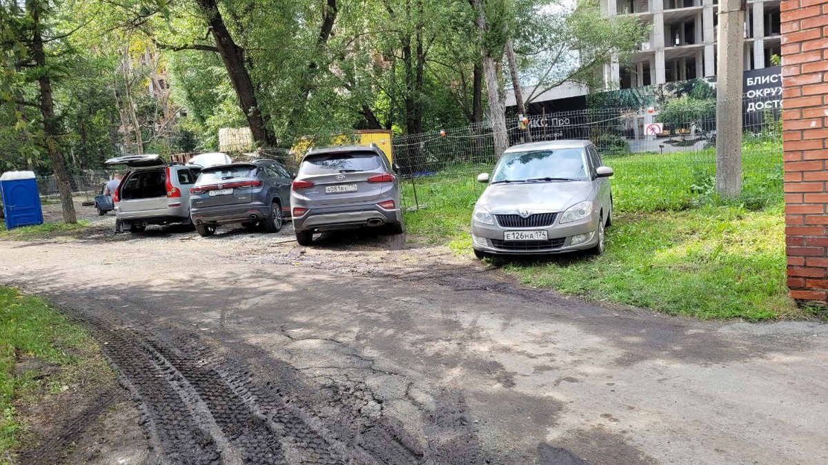 Челябинцев возмутила парковка и биотуалет на газоне около стройки премиального ЖК